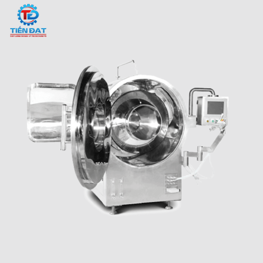 Luồng khí nóng đi qua một màng được thiết kế đặc biệt, làm nóng các viên thuốc đang lăn đồng đều bên trong, phun dung dịch xuống viên lăn thông qua máy bơm và súng phun để đạt được mục đích phủ và sấy khô.